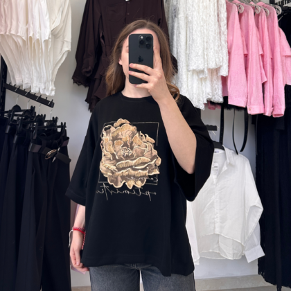 Черна тениска с цветен принт