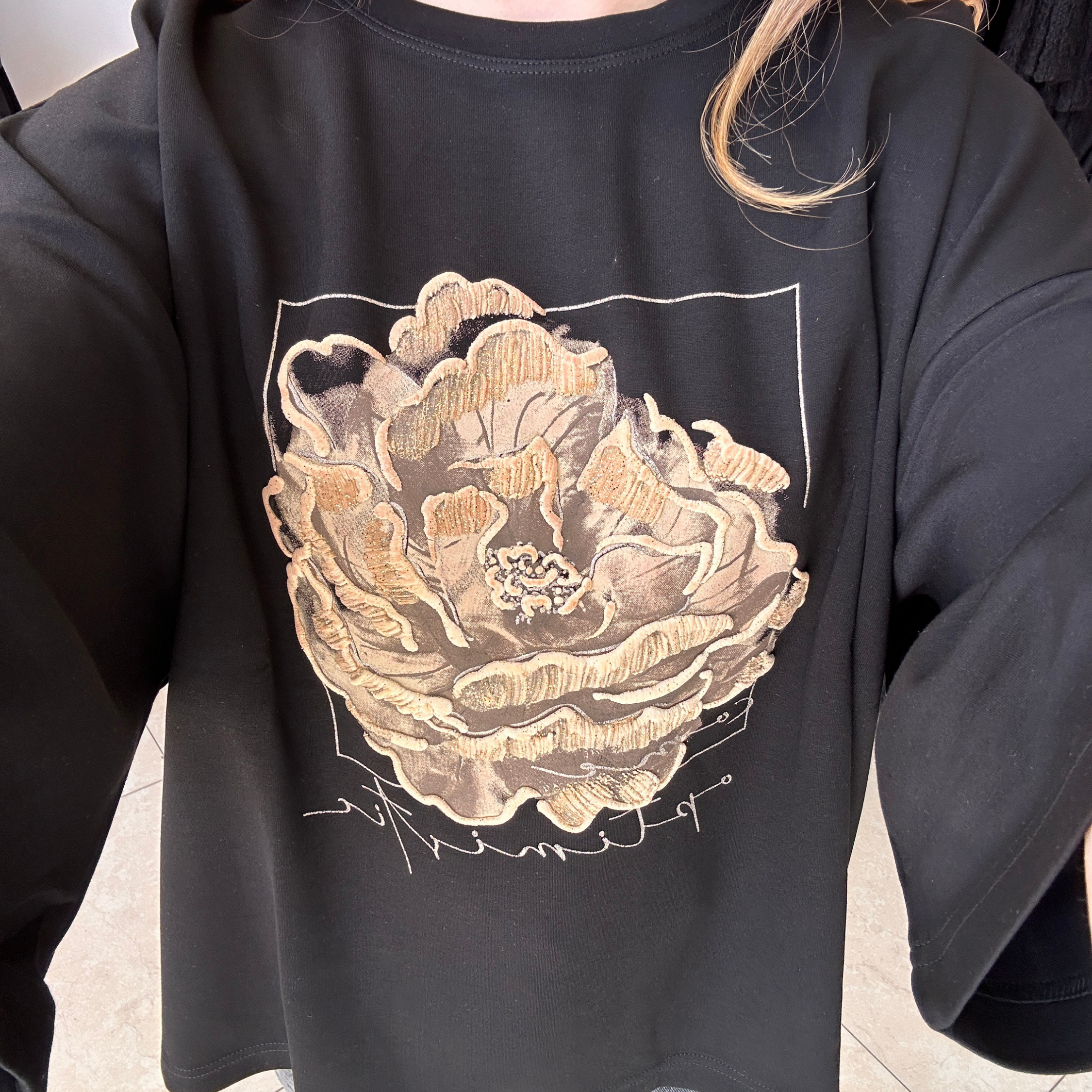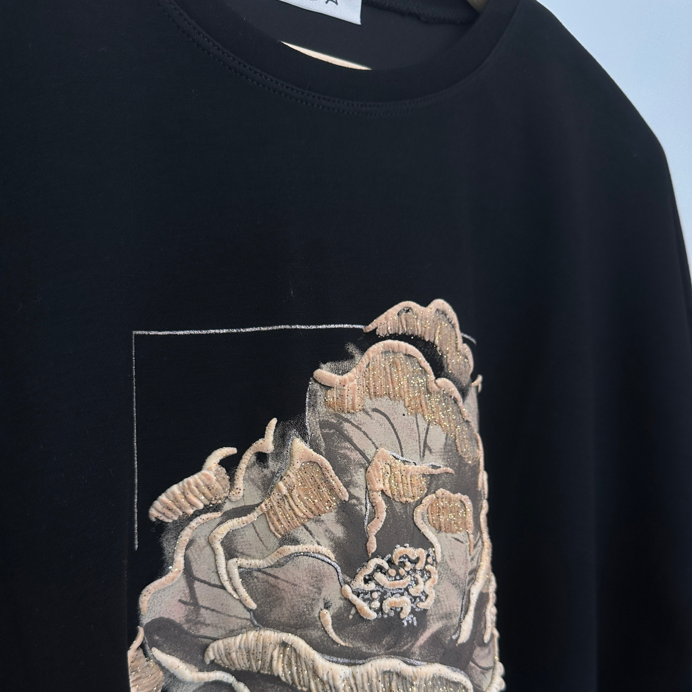 Черна тениска с цветен принт