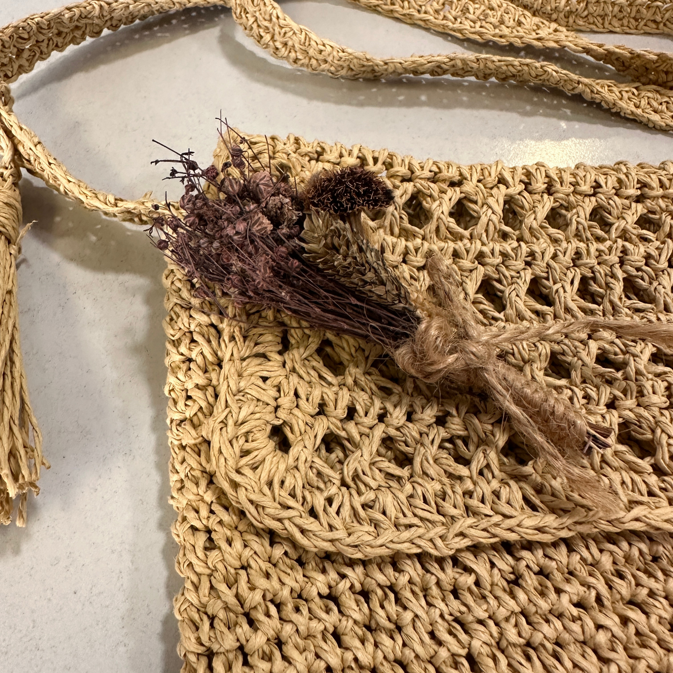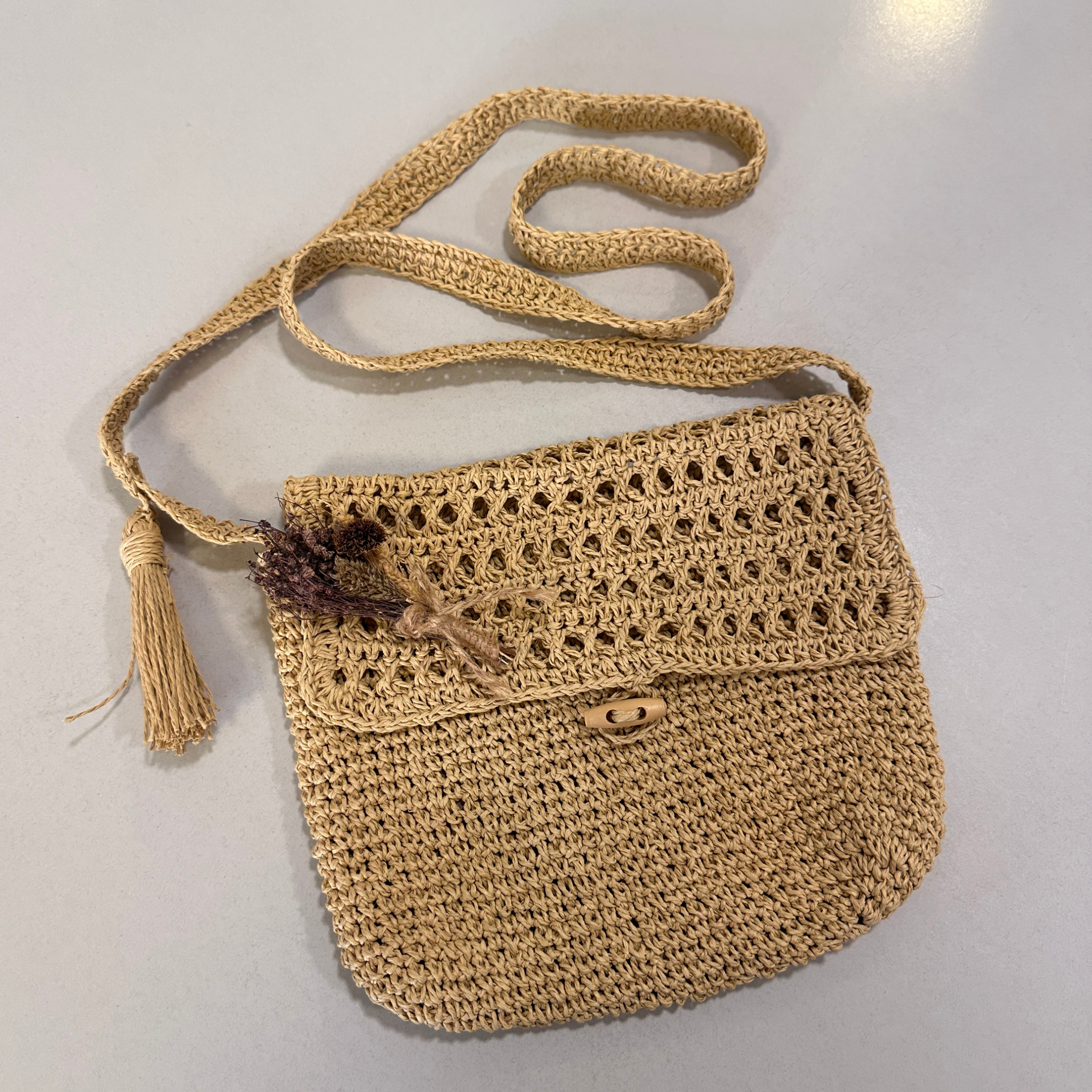 Малка ръчно плетена чанта с цветя